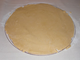 I had never made pie crust before because I find it so intimidating, so the fear factor was high. In order to make it a bit easier, I bought a canvass pastry mat that hooks on my counter for about $20--so much much better than the flexible cutting board I used with the puff pastry. I also bought some little cookie cutters to decorate the crust with cutouts--a bare foot for Ina, a maple leaf for Natashya and a fall leaf to get into the spirit of the season.